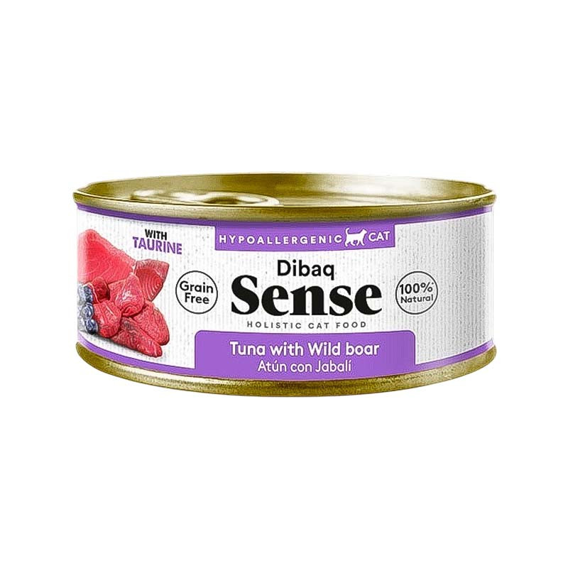 Dibaq Sense Latita 70g Atún con Jabalí es una comida húmeda para gatos adultos de todas las razas, hipoalergénica, Elaborada con carnes frescas de atún y jabalí.