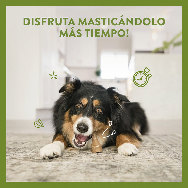 - Como ocurre con todo producto comestible, vigila que tu perro lo mastique correctamente. Ingerir pedazos mal masticados puede ser perjudicial o incluso mortal para un perro.
